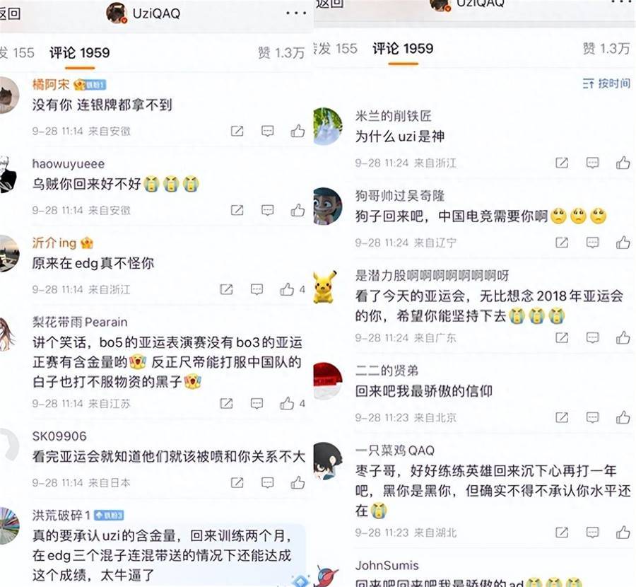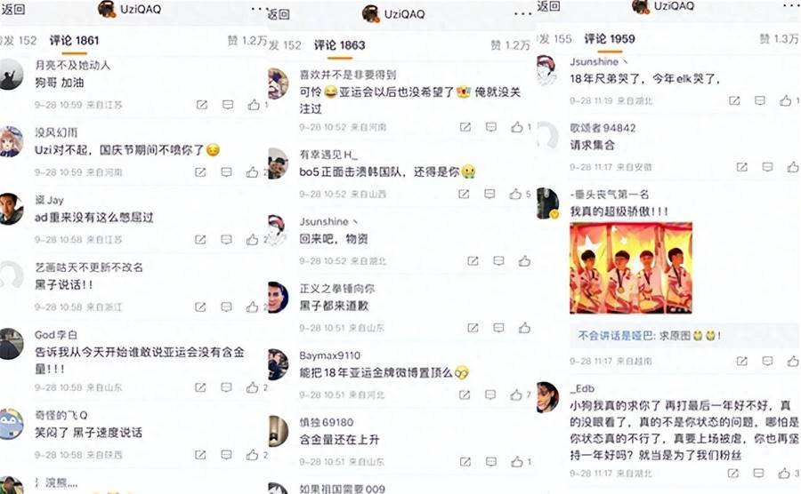 現在四強賽結束,LPL已經錯失金牌了。看到這個結果,烏茲風評突然變好了。我看到很多人去他評論區留言,有的喊話小狗加油,有的說對不起,這段時間不會噴他了。連LCK觀眾都說,LPL最強ad是烏茲。現在他退役了,亞運會就無需擔心。
