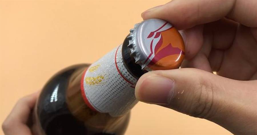利用筷子粗的一頭,左手握住啤酒,右手拿住筷子粗的那頭,左手食指當支撐點,筷子用力一翹,這樣啤酒瓶蓋就能輕松打開了。