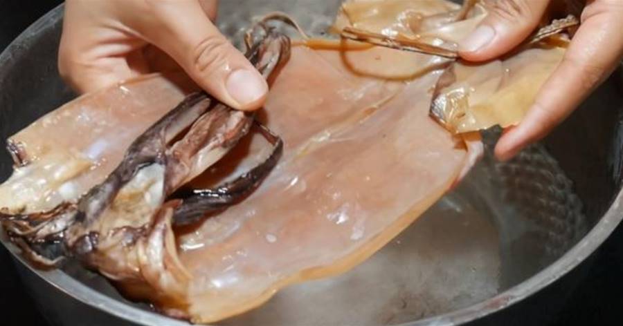 時間到后再用清水沖洗幾遍就可以了,這樣泡發過的魷魚更加鮮嫩,而且泡發的又軟又蓬松,一點腥味都沒有。