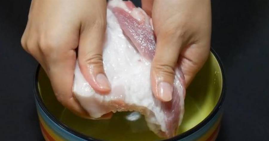 準備一個小碗,在碗中倒入適量的高度白酒然后將豬肉放進碗中浸泡一下,再在豬肉上涂抹一層食用油,白酒有殺菌消毒的作用,食用油可以鎖住豬肉里面的水分。
