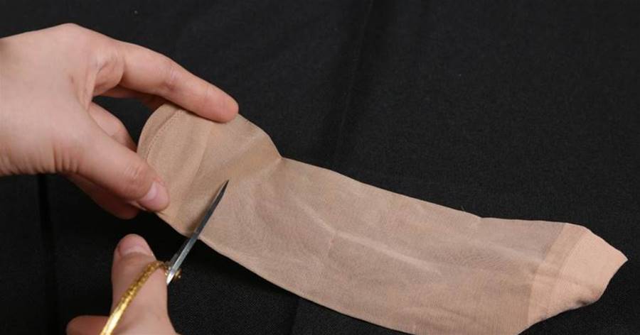剪下一小截絲襪,充當臨時的橡皮筋使用。