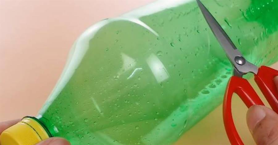 準備一個大號塑料瓶,用剪刀將塑料瓶的底部剪下來,剪掉之后用剪刀把邊緣修剪整齊。用電烙鐵頭在塑料瓶的兩側對稱戳兩個孔,準備一根繩子,就用手提袋上的繩子就可以了,把繩子穿在孔里面。這樣一個用廢棄塑料瓶改造成的收納器就做好了,把它掛在家里可以用來收納雨傘,很實用。