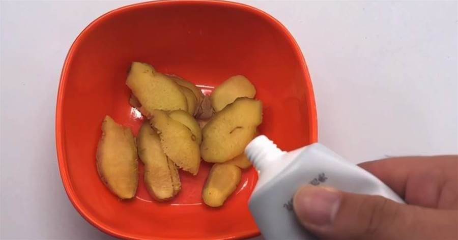 牙膏當中含有薄荷的成分。非常的清香,而這個生姜里面含有姜醇成分,可以有效的吸附這些異味。
